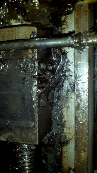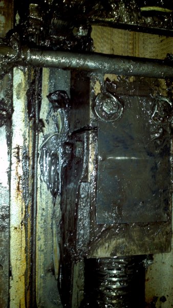 Also die Tragmutter ist durch. Aus dem kleinen Spalt konnte ich die Gewindegänge rauspopeln. Und wenn ich die Bühne wieder mit dem Arm belastet habe war der Spalt zu.