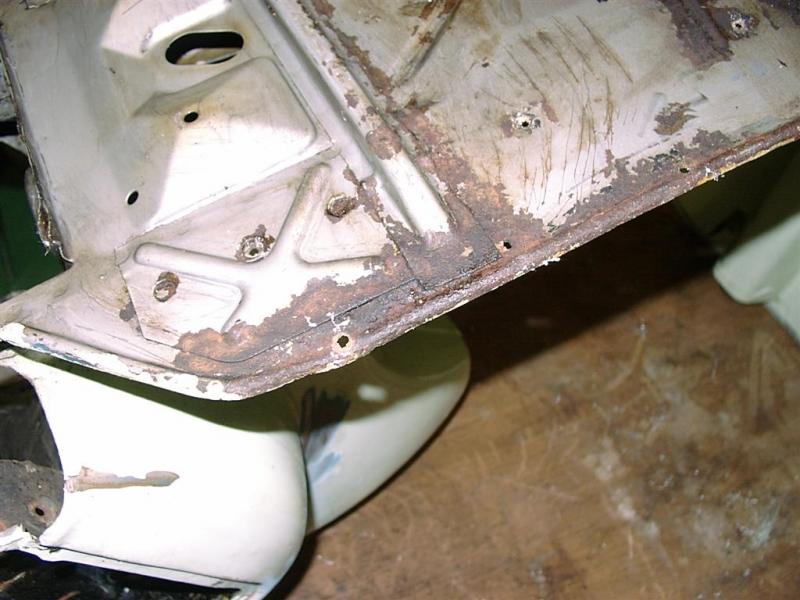 Durch den Sturz war das Bodenblech gerissen ...störte mich aber nicht .... da wurde kurzerhand die ganze Kiste mit der Rolle einmal übergetüncht und fertig.