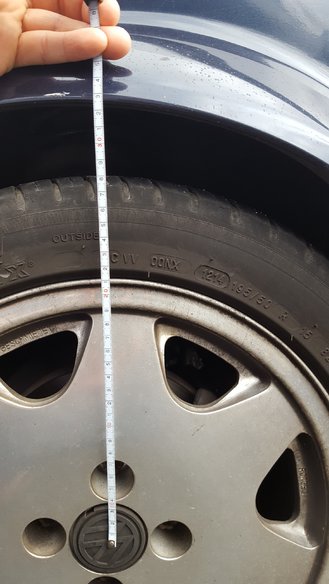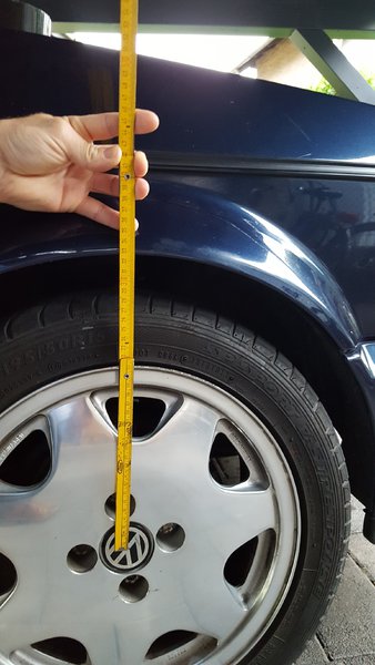 ich habe mal ein Bild gemacht von einem Classicline mit original Fahrwerk, bevor ich da ein Gewindefahrwerk eingebaut habe. Reifen waren auch 195/50-15.