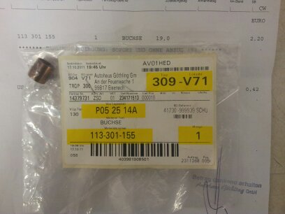 Da mein Diesel-Anlasser in letzter Zeit auch gewaltig nachschnarzt, der aber vom Schrott kam (geprüft usw.) hatte ich die Anlasserbuchse in der Getriebeglocke gewechselt.