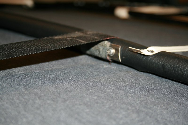 1.) Mir ist aufgefallen das diese Seitenblenden, wo das Persenning festgeknöpft wird, nur in so ein Art Stück Gummi eingeschraubt ist, fehlt da vielleicht was, kann mir garnicht vorstellen wie das halten soll ?!